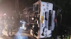 നെല്ലാപ്പാറയ്ക്ക് സമീപം നിയന്ത്രണം വിട്ട ബസ് ഒരു വശത്തേക്ക് മറിയുകയായിരുന്നു. 42 കുട്ടികളും 4 അധ്യാപകരുമാണ് വാഹനത്തില് ഉണ്ടായിരുന്നത്.